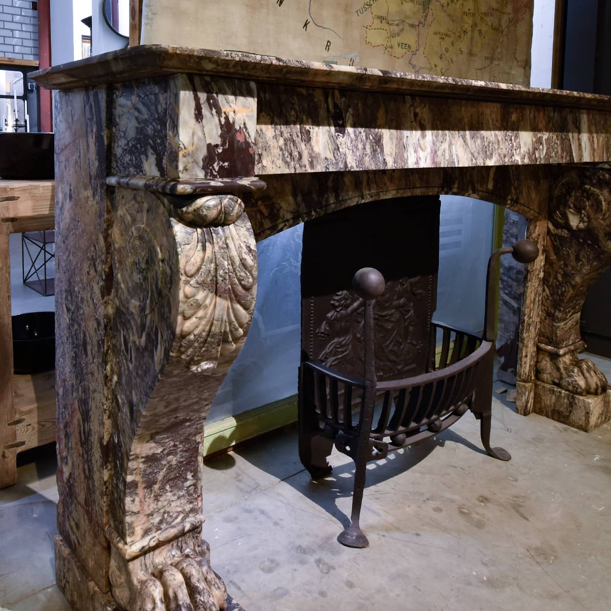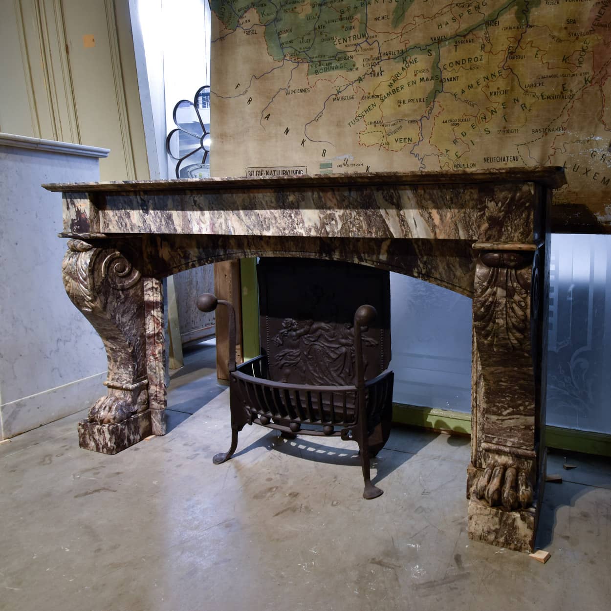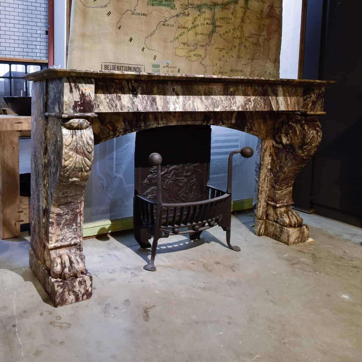 Antiker Vorsatzkamin aus Marmor im Stil Ludwigs XV. mit Löwenfüßen.
