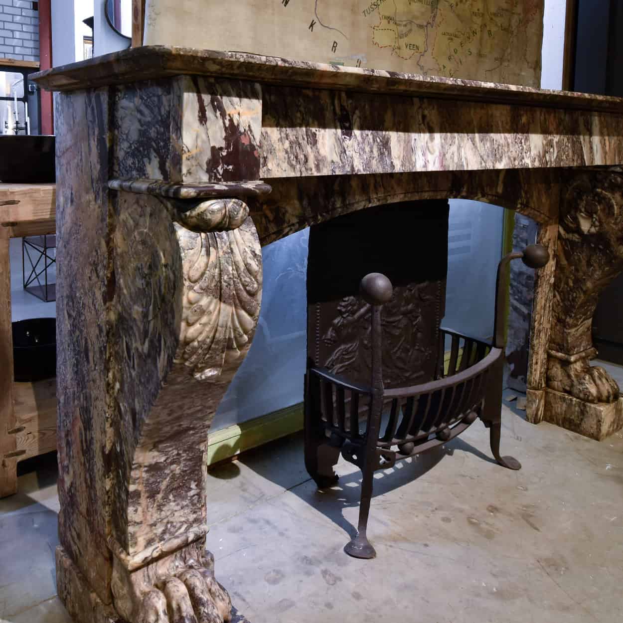 Dieser antike Marmorkamin wurde in unserer eigenen Werkstatt von erfahrenen Restauratoren vollständig gereinigt und vormontiert. Das liegt daran, dass die meisten antiken Marmorkamine aus mehreren Einzelteilen bestehen. Diese bestehen aus 2 kompletten Ständern, dem Oberteil und einigen losen Teilen, so dass die Installation des Kamins durch den Bauunternehmer oder Kaminbauer korrekt und vor allem viel schneller erfolgen kann.