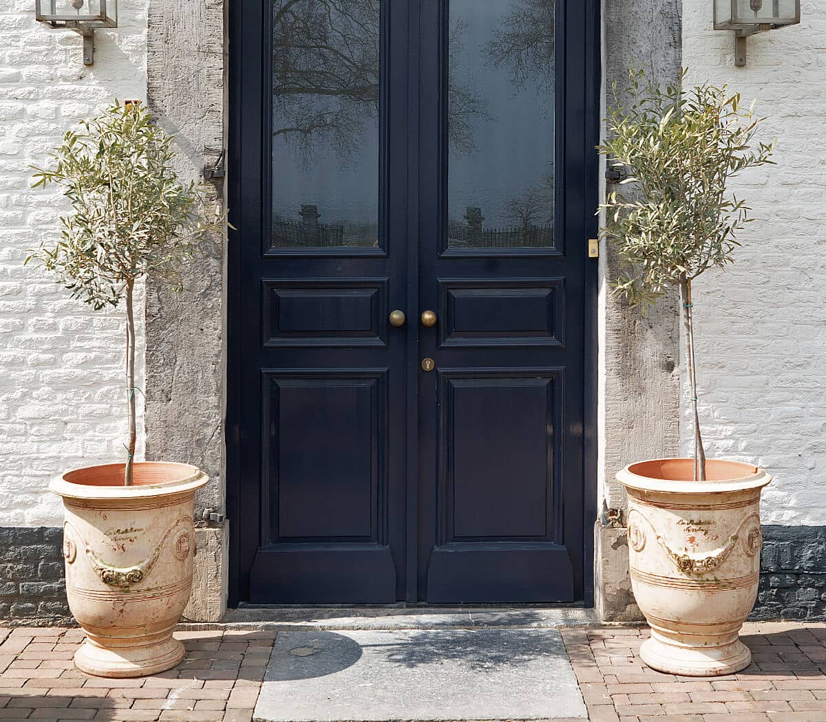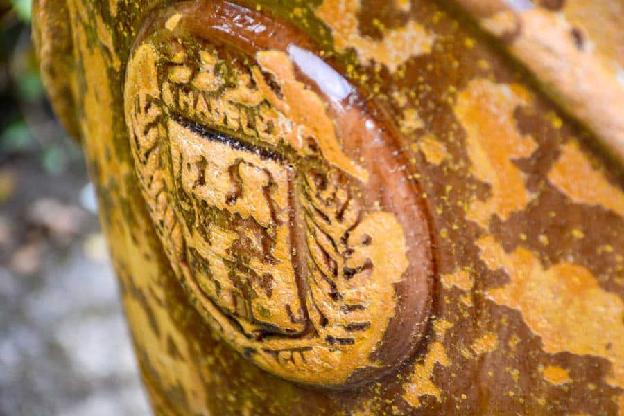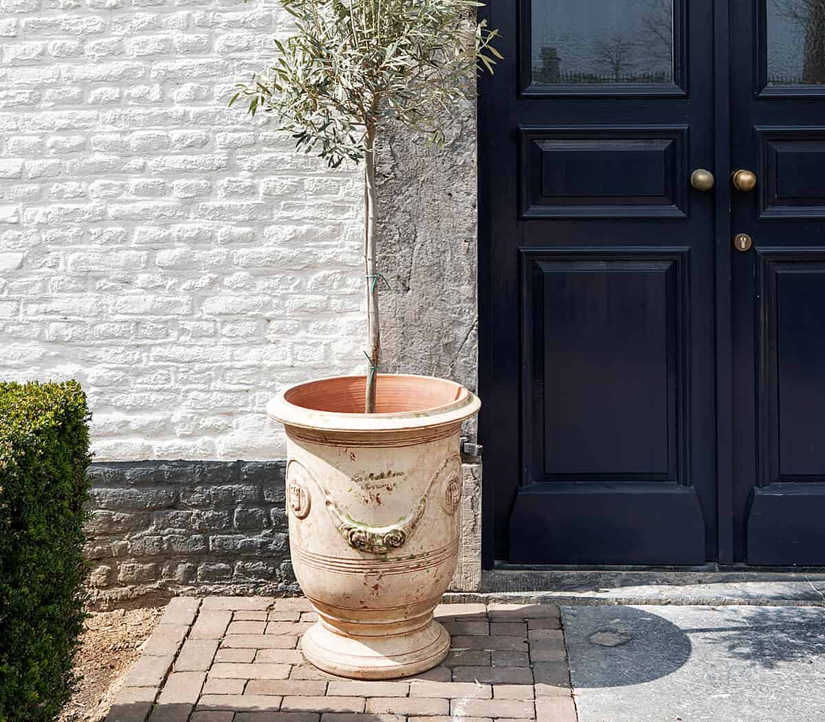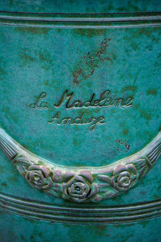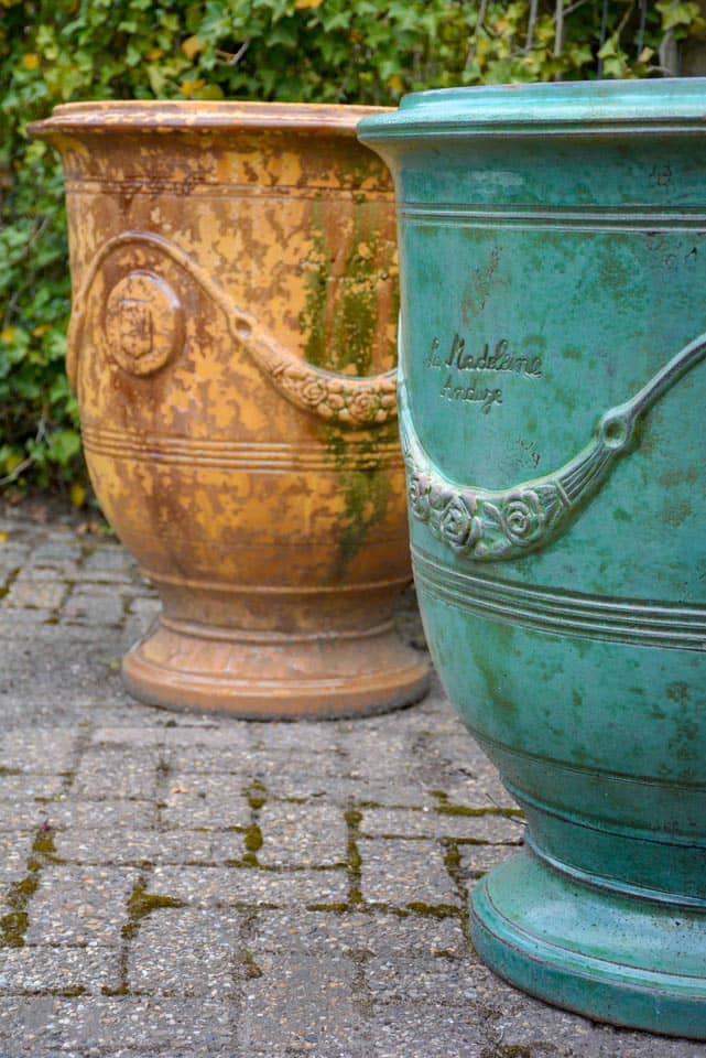 Rustic pot/vase in various colours and sizes in our park and courtyard gardens.