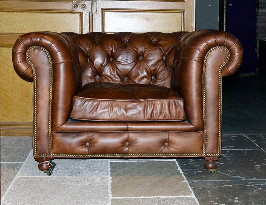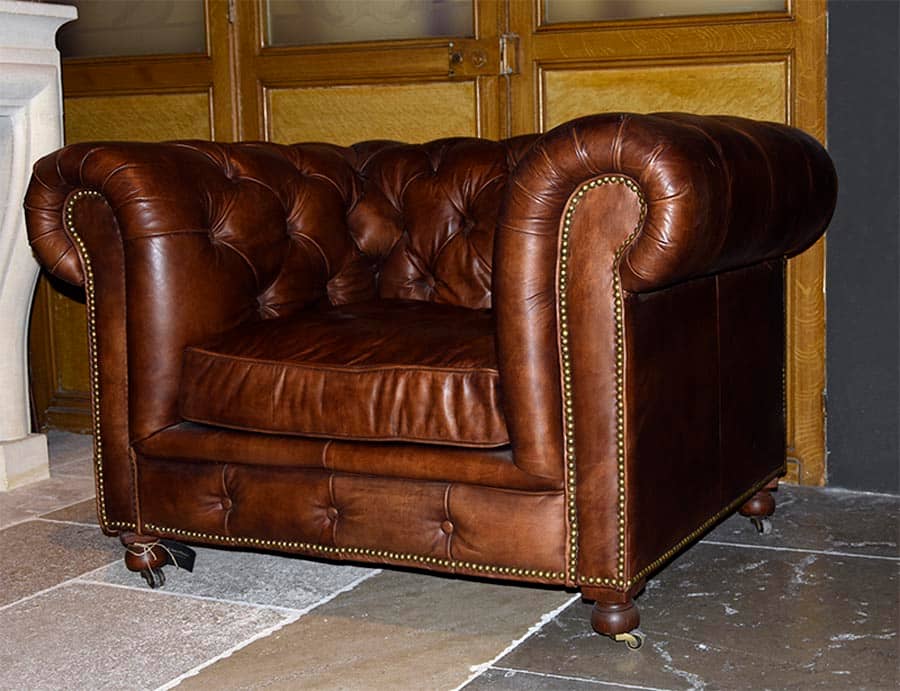 HomeFauteuil in vintage bruin leer “chesterfield” model