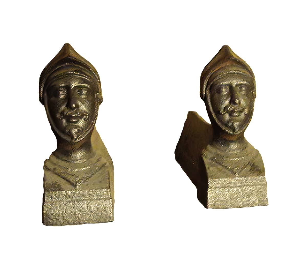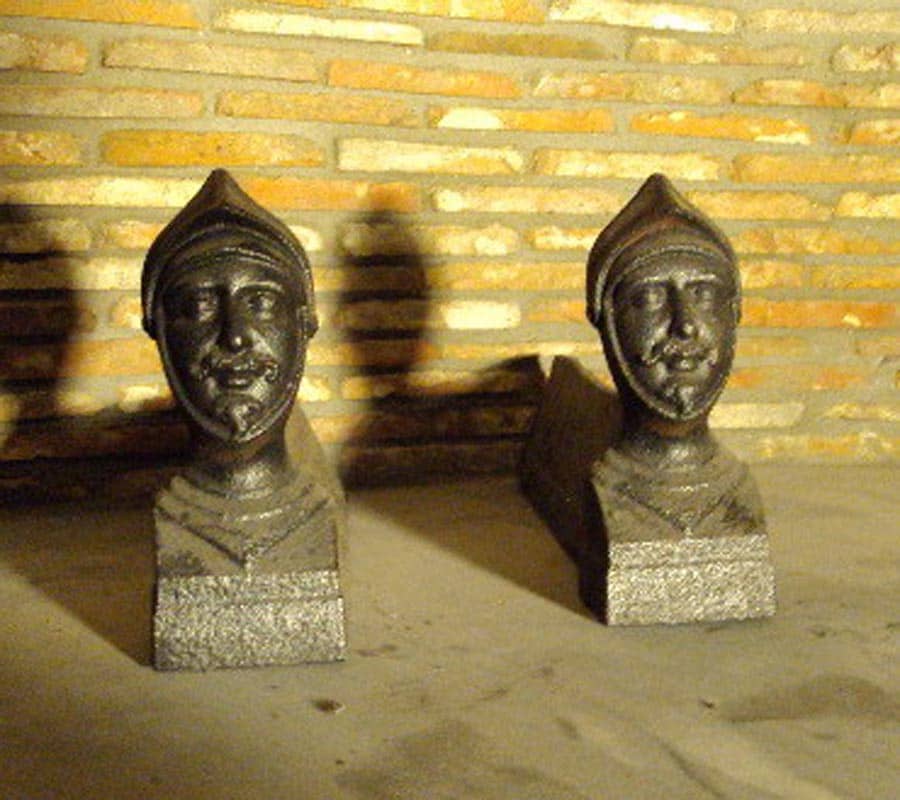 Set antieke gietijzeren vuurbokken die dienen om het stookrooster op te leggen. Deze combinatie zorgt voor een betere luchttoevoer en daardoor beter brandend vuur. Als decoratie ook mooi in een gashaard.